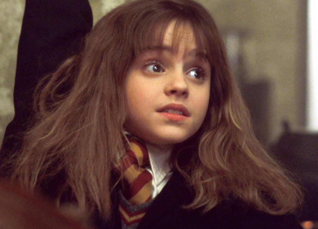 EMMA WATSON WEARS FAKE TEETH IN THE TRAIN SCENE IN THE SORCERERS STONE AS HERMIONE WAS DESCRIBED IN THE BOOKS HAVING LARGE FRONT TEETH, AN OVERBITE. SHE DIDN’T WEAR THEM FOR THE ENTIRE SERIES OF COURSE AS THE DIRECTOR SAID IT WAS NOT POSSIBLE TO PERFORM IN THOSE, BUT SINCE SHE HAVES THEM REMOVED IN HER FOURTH YEAR BY MADAM POMFREY SO NO HARM DONE ACTUALLY!